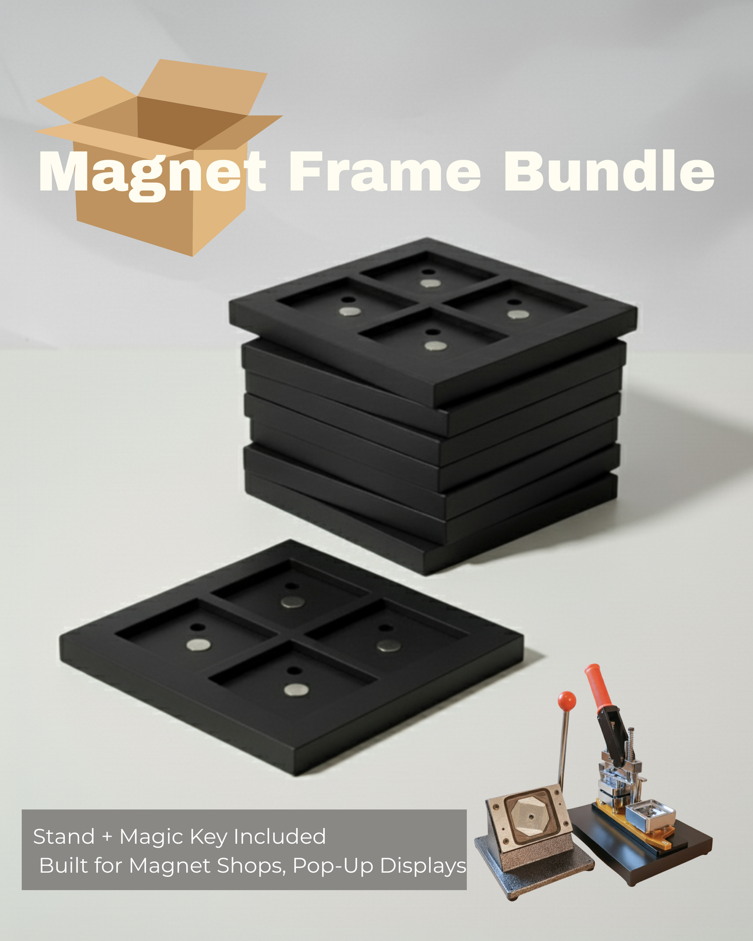 Our Magnet Frame Bundle includes everything you need to showcase your photo magnets in style. Whether you're selling at markets or setting up a permanent display, this bundle is designed to impress and built to last.