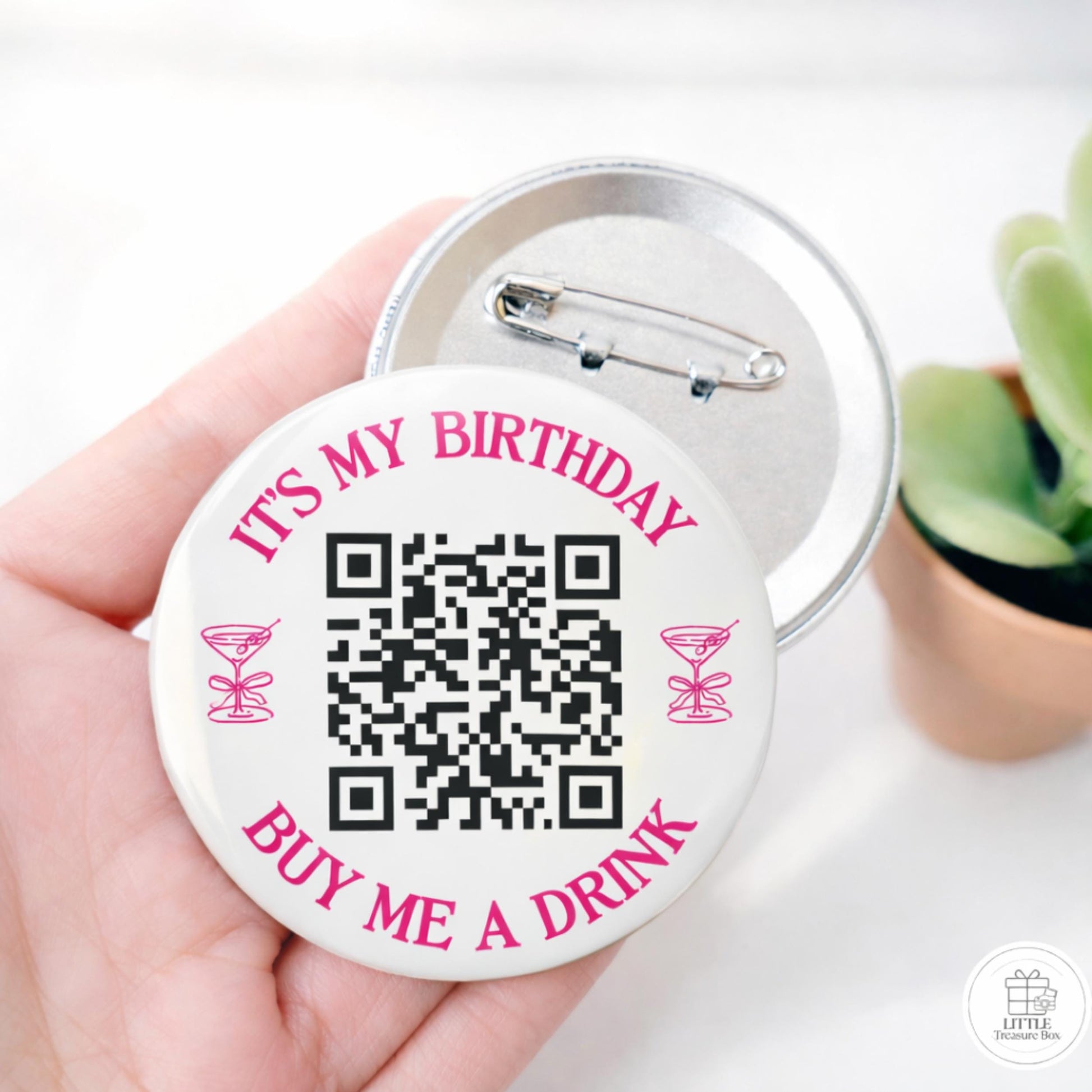 🎉 Buy Me a Drink – Birthday QR Code Pin