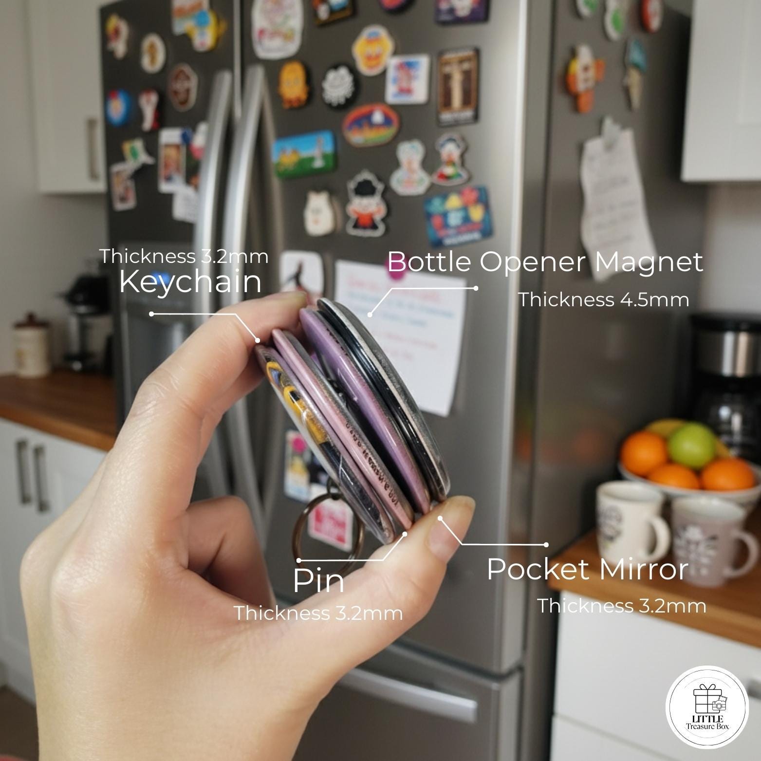 ✅ 2.28" Round Magnet, pin, mirror, keychain, magnetic bottle opener (Your choice)